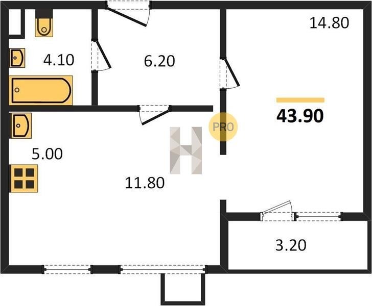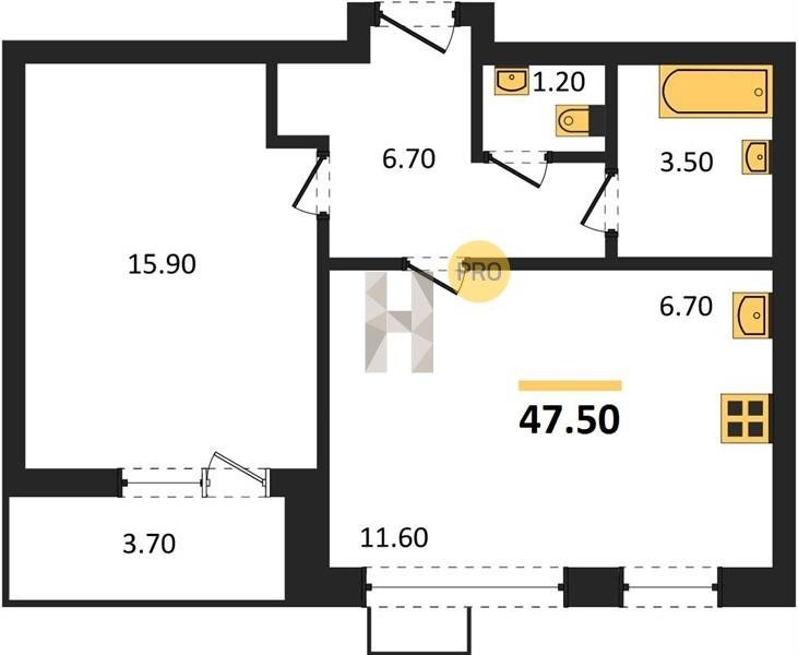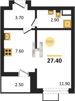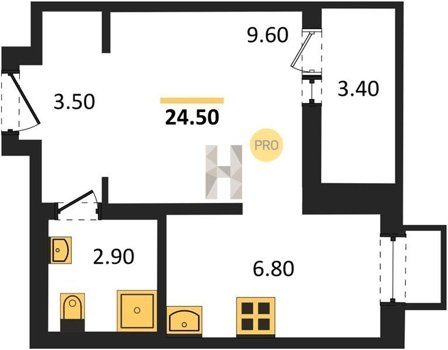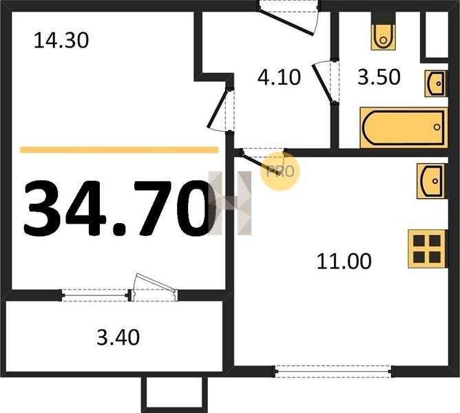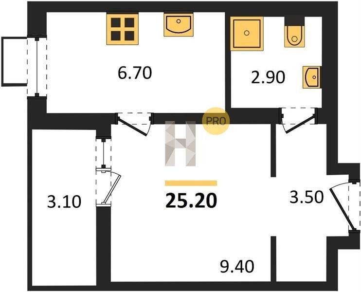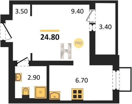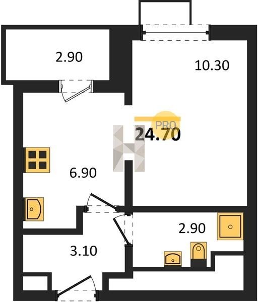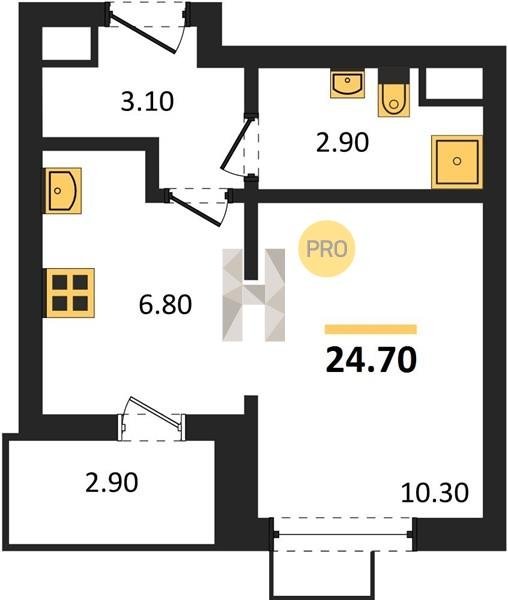 Площадь от 24.7 м2