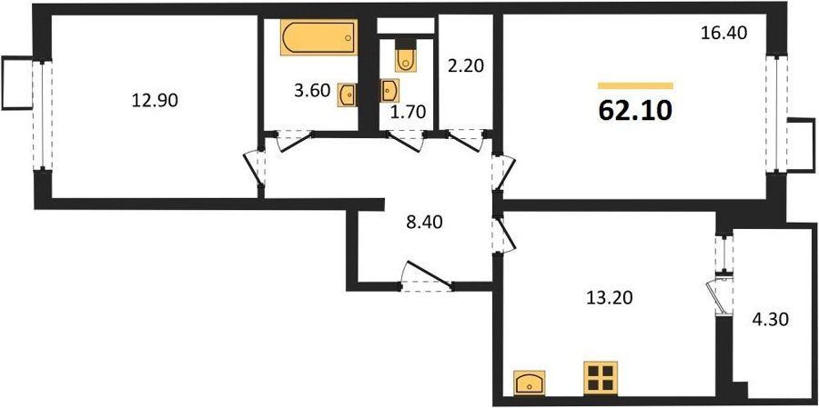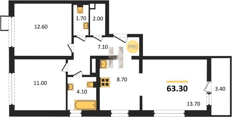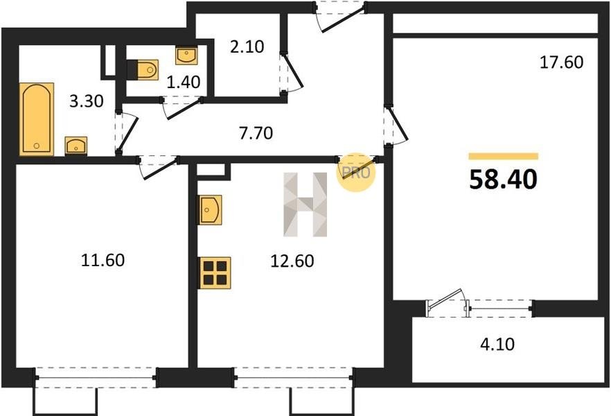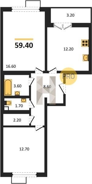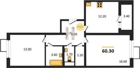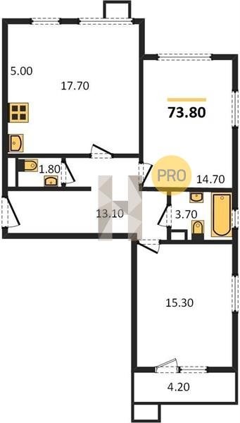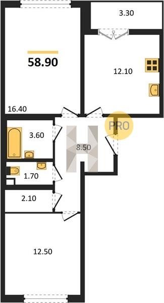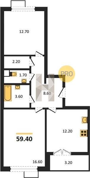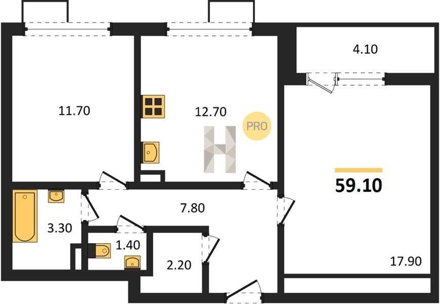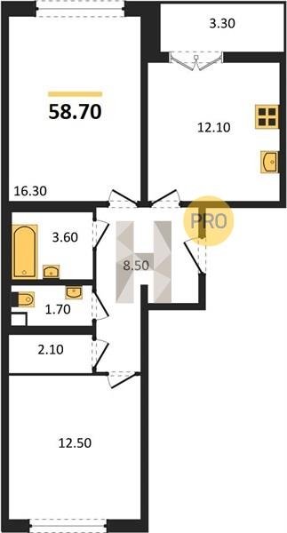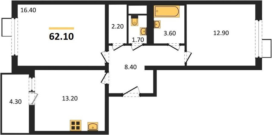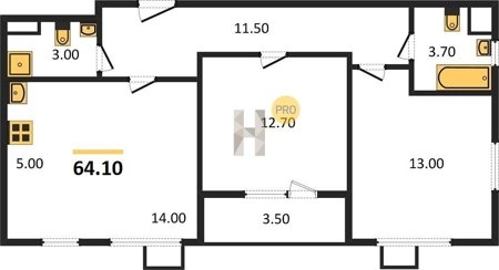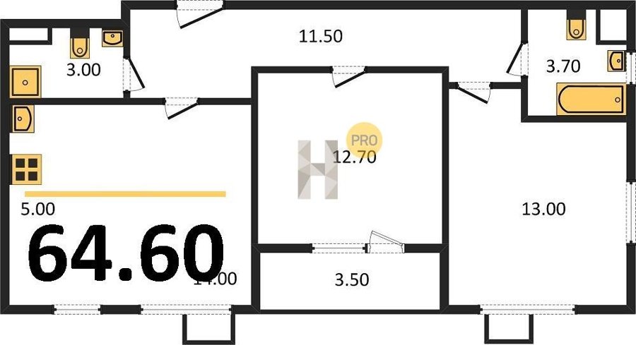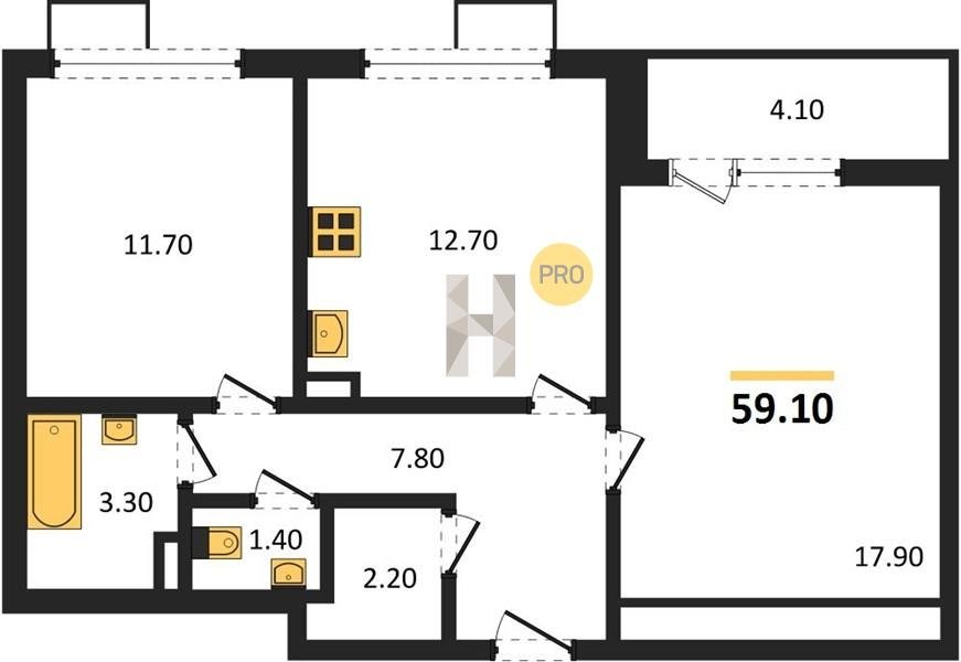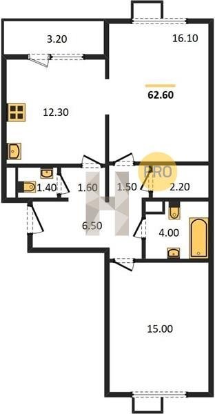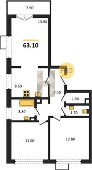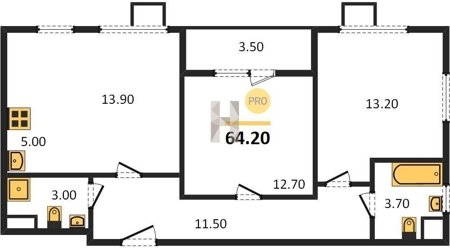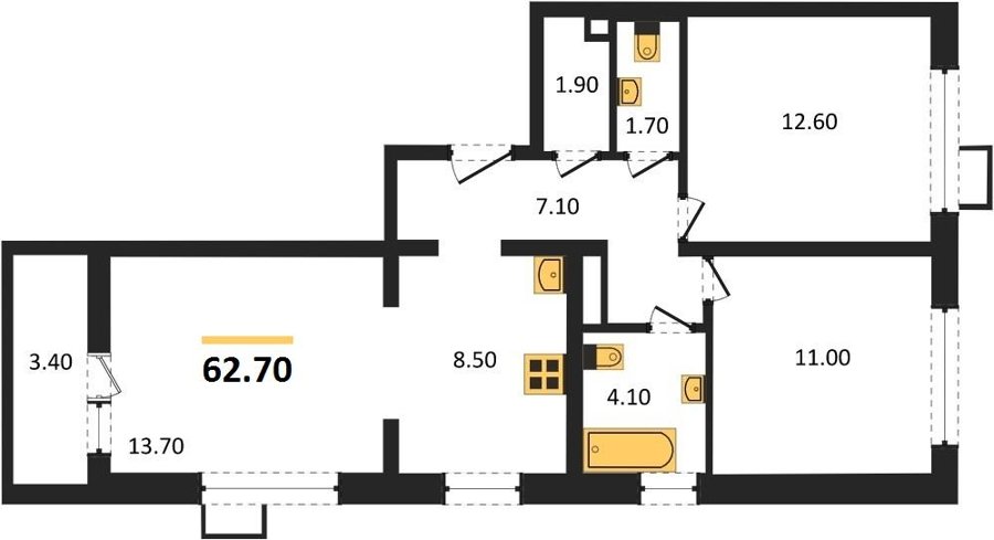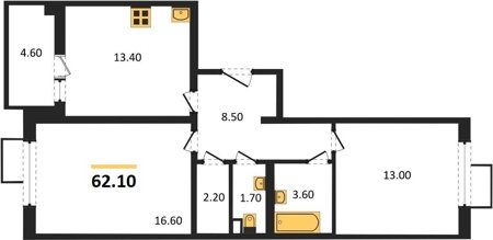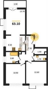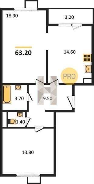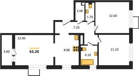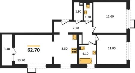 Площадь от 62.7 м2