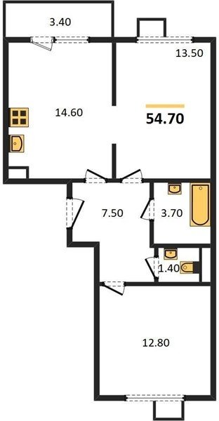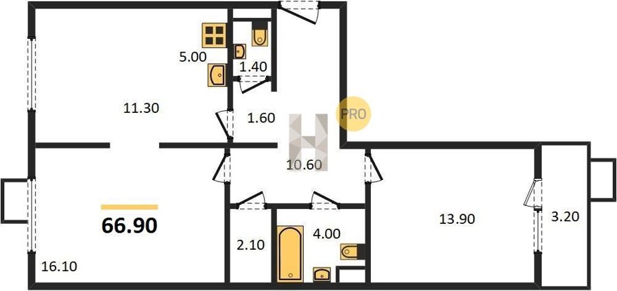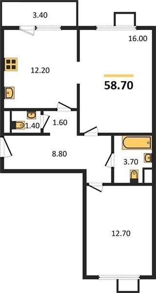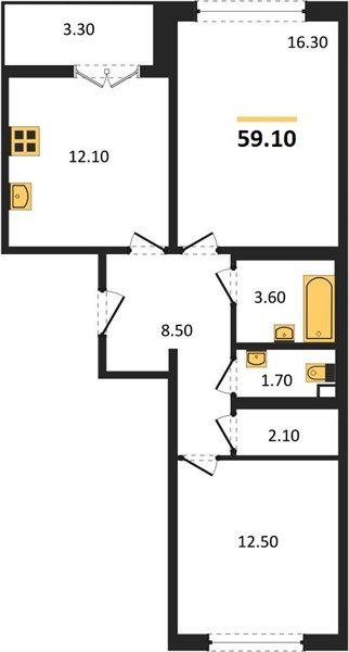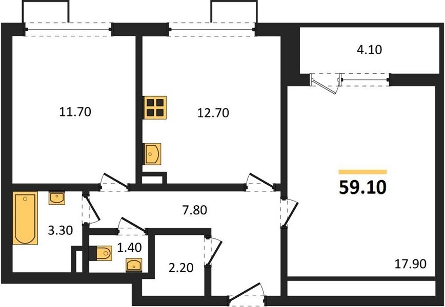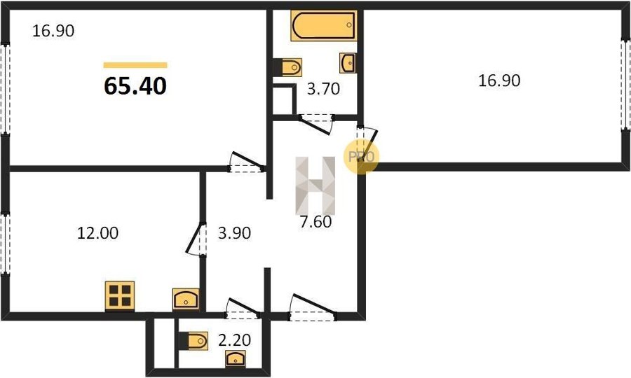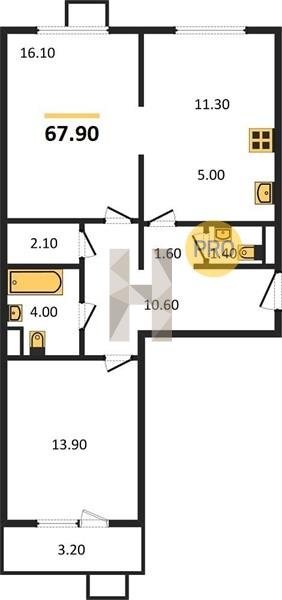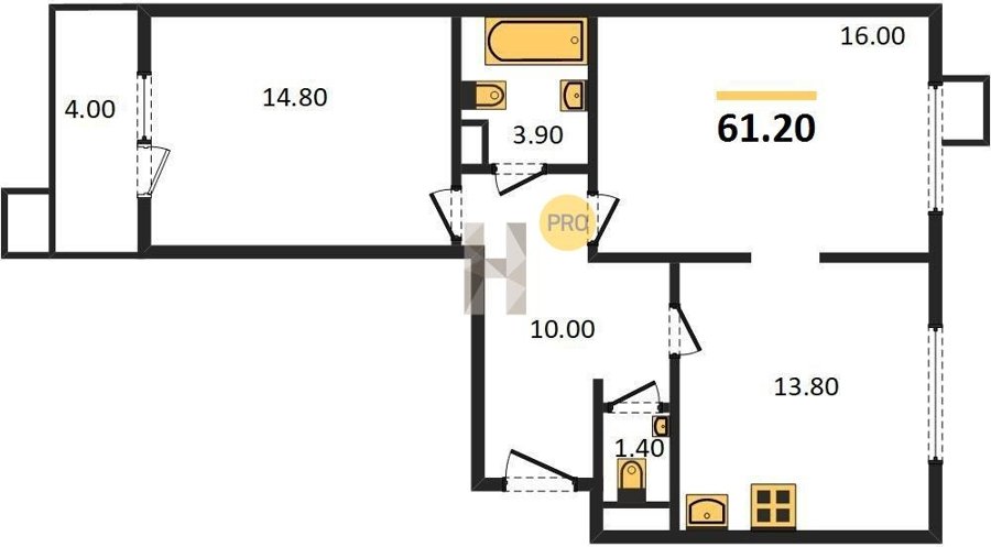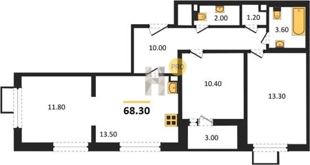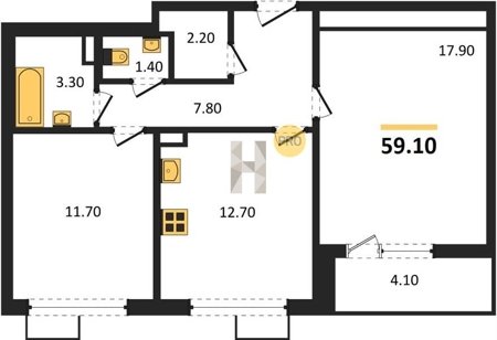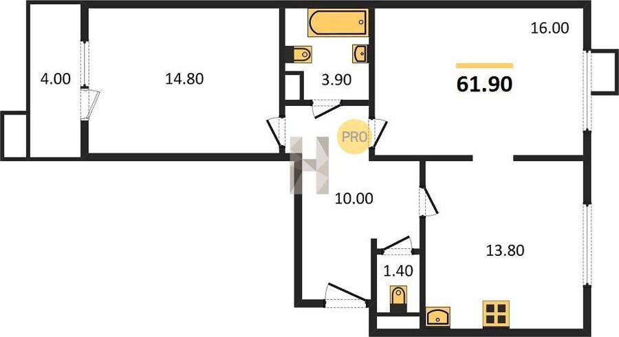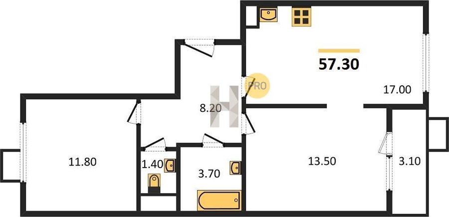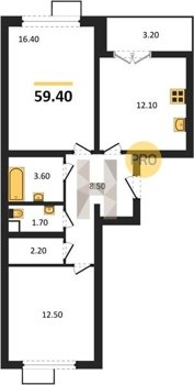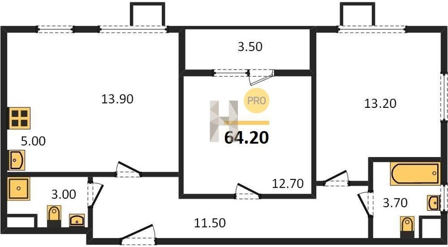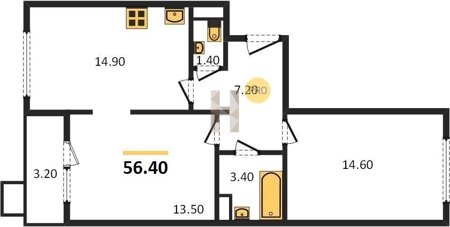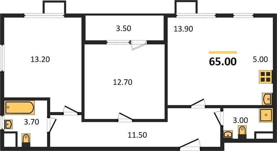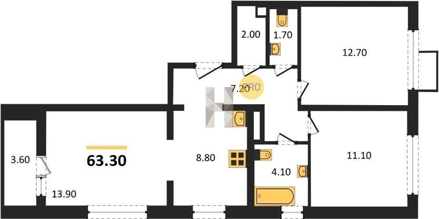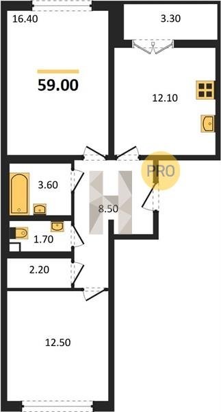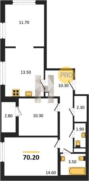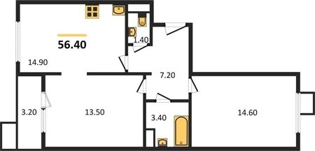 Площадь от 62.7 м2