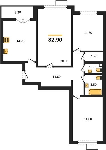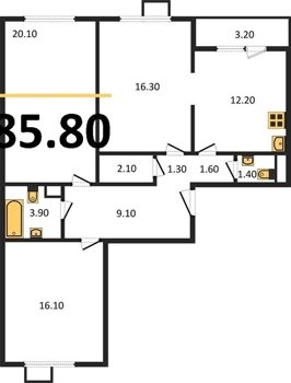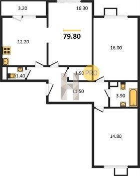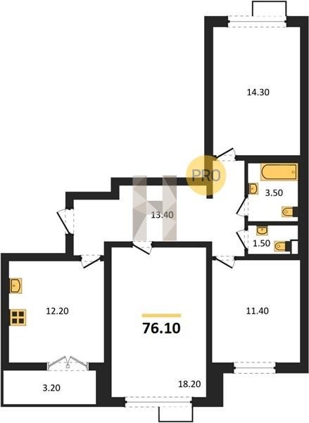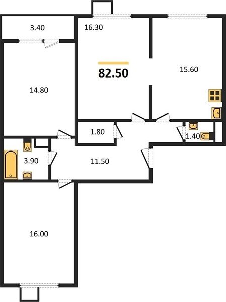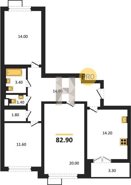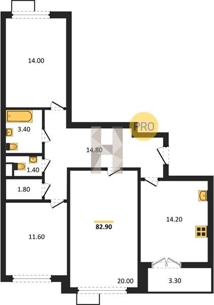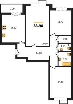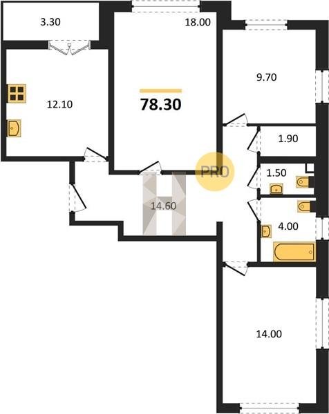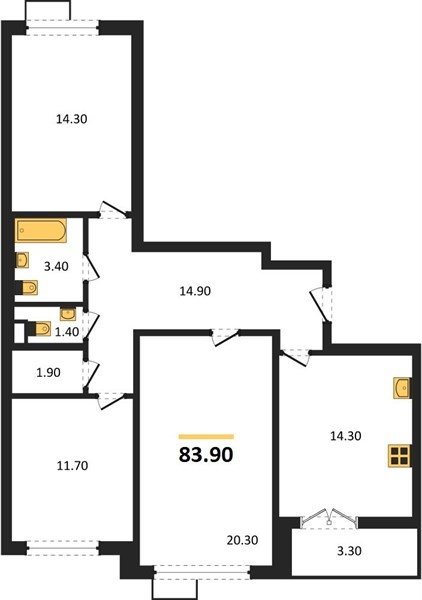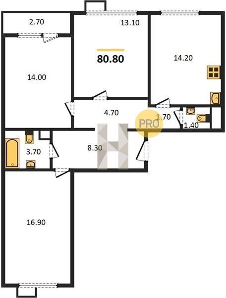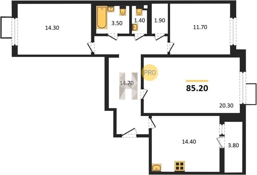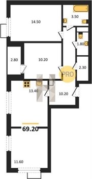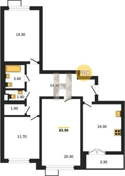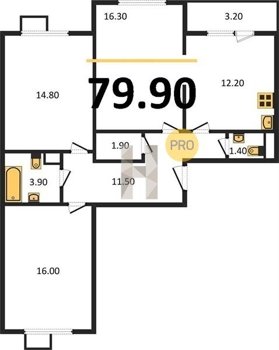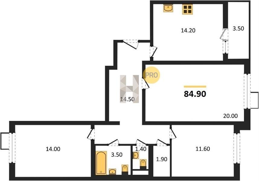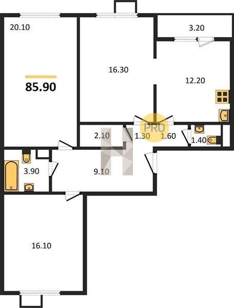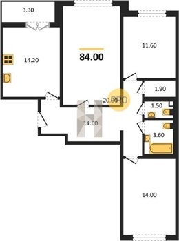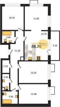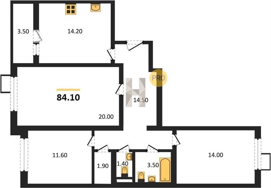 Площадь от 84.7 м2
