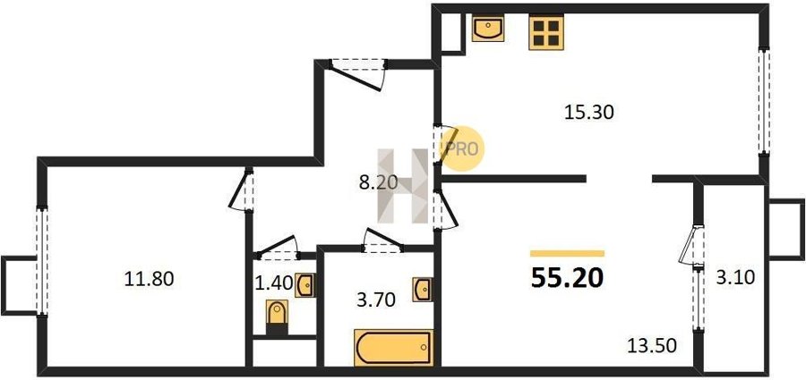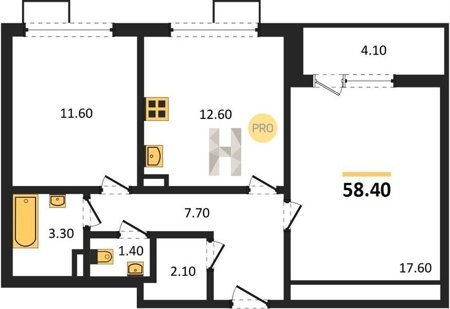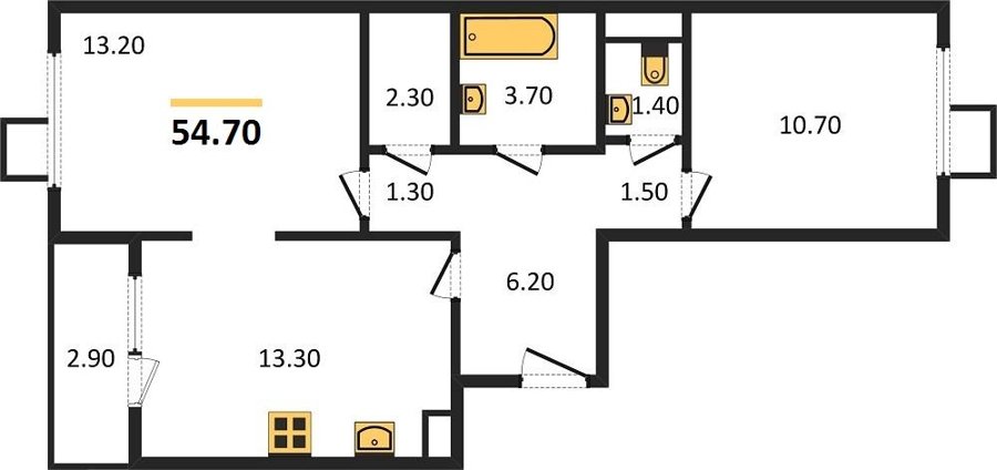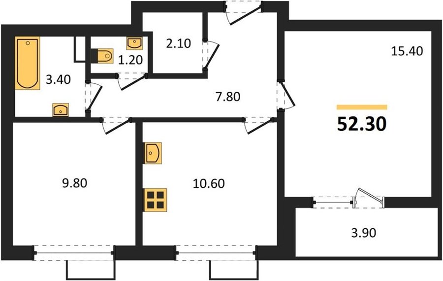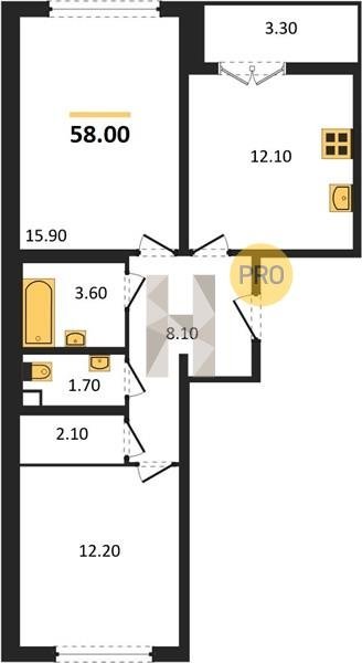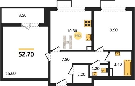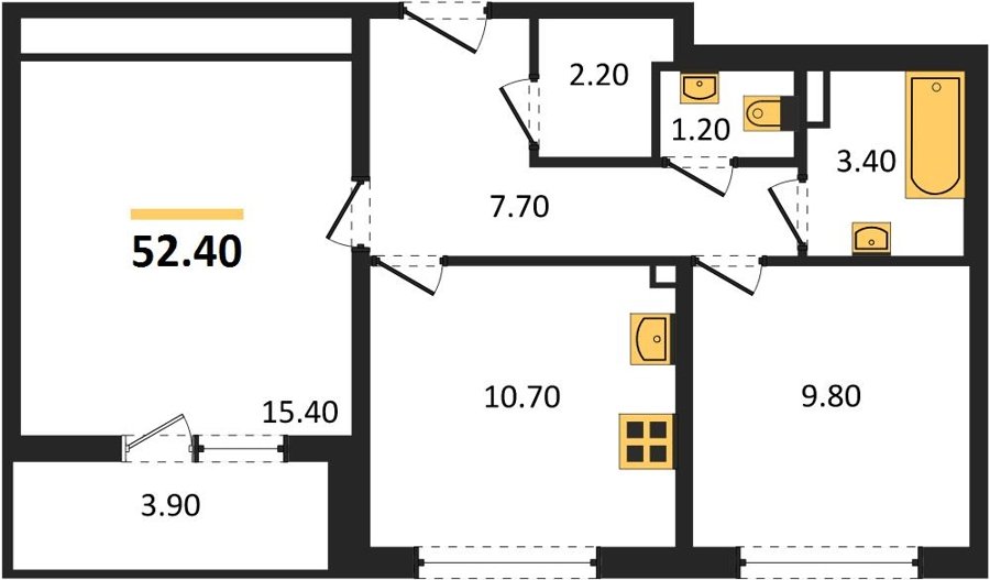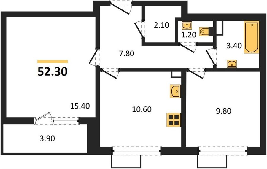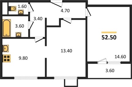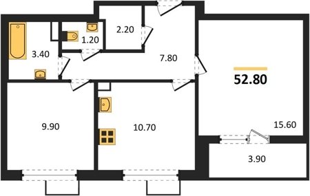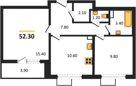 Площадь от 52.2 м2