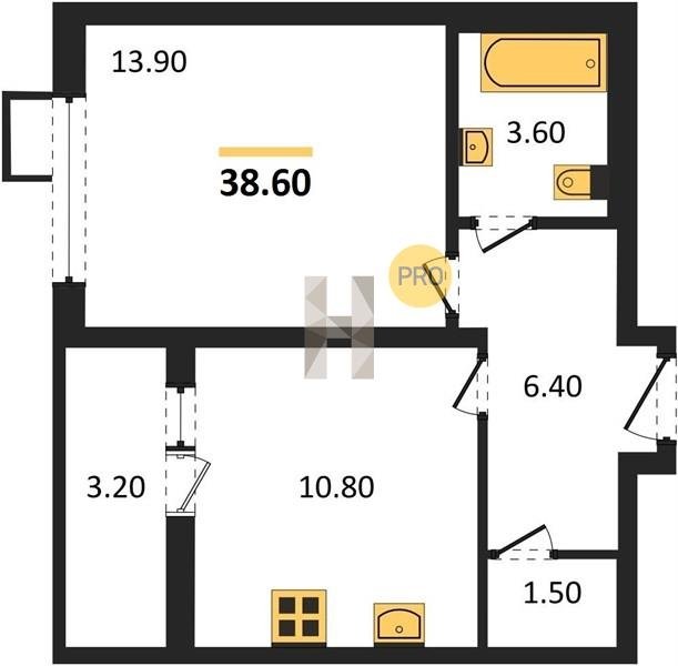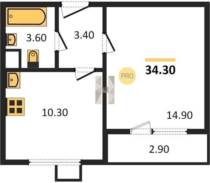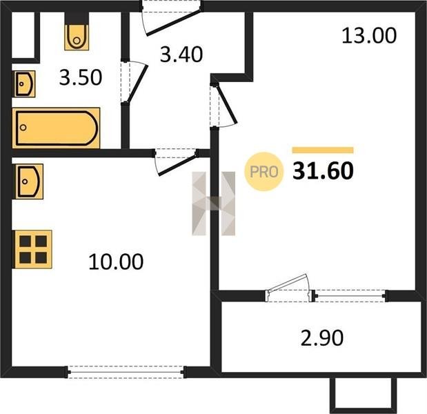 Площадь от 22.9 м2