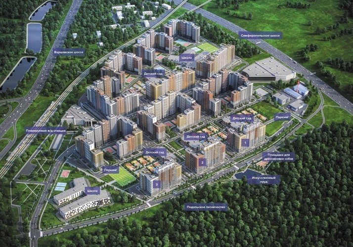 Жилой комплекс расположен в 3 км от МКАД между Варшавским и Симферопольским шоссе, с южной стороны от комплекса находится Бутовский лесопарк, а с западной – район Москвы Северное Бутово. Удобное расположение вблизи трех станций метро (Аннино, Бульвар Дм. Донского, Улица Старокачаловская), обеспечивает жителям хорошую доступность на личном и общественном транспорте.ЖК включает 12 жилых корпусов и всю необходимую социальную инфраструктуру: 4 детских сада (всего на 1300 мест), 2 школы (всего на 2700 мест), площадки для отдыха детей и взрослых, прогулочные зоны, надземные и подземные парковки, встроенные нежилые помещения, поликлиника, торговый центр, коммерческие помещения на первых этажах зданий, искусственный пруд и даже площадку для дрессировки собак.