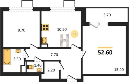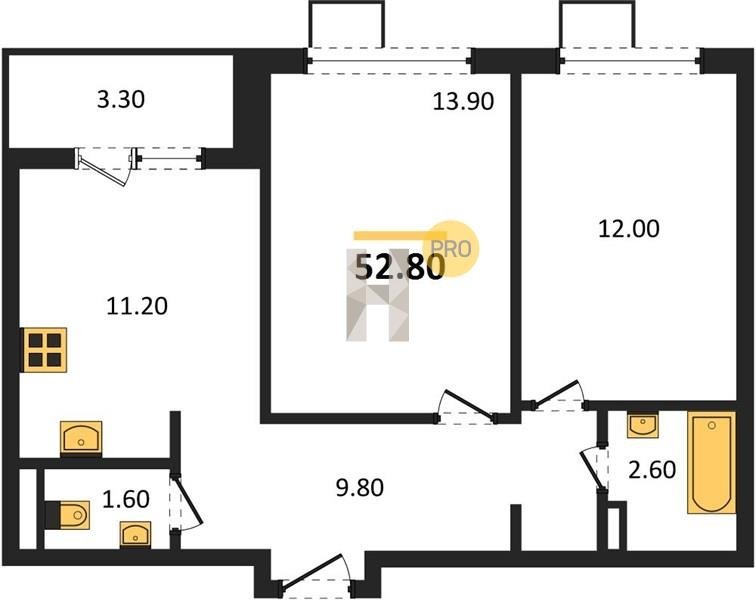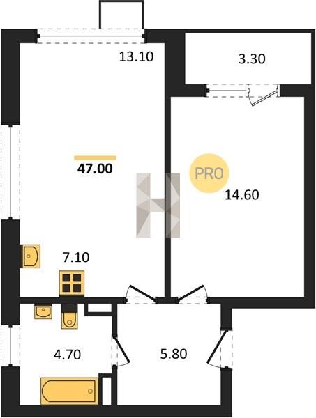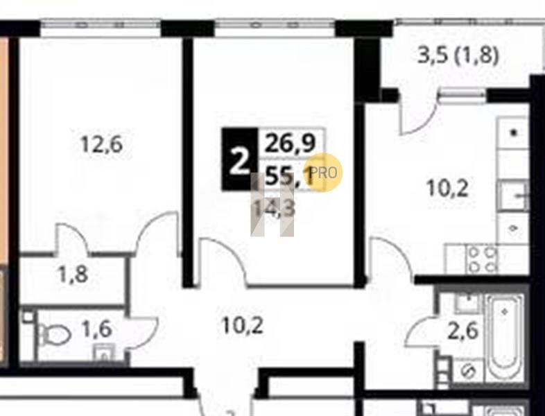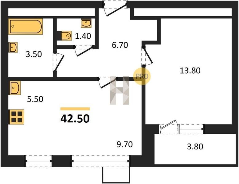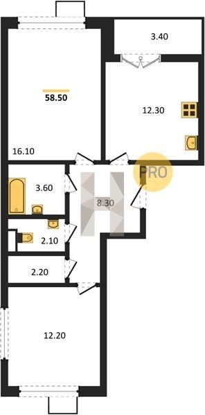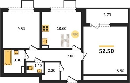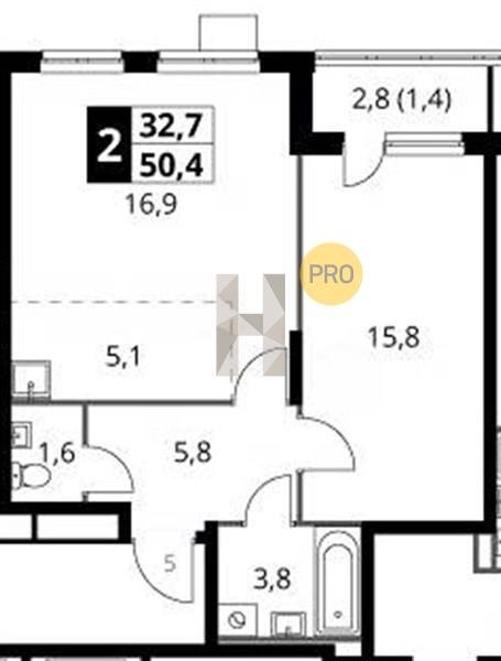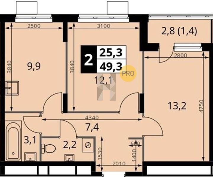 Площадь от 49.3 м2