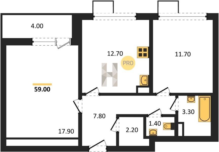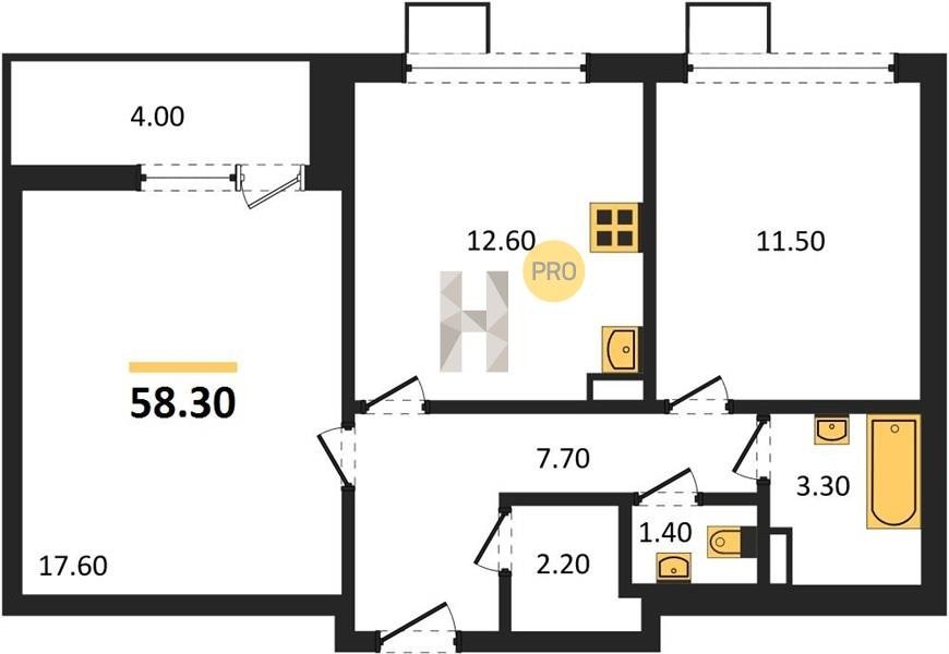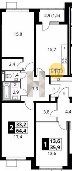 Площадь от 63.1 м2