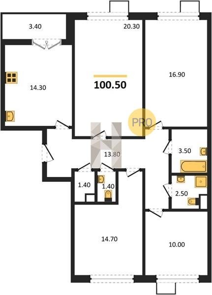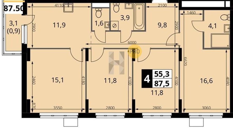 Площадь от 87.5 м2