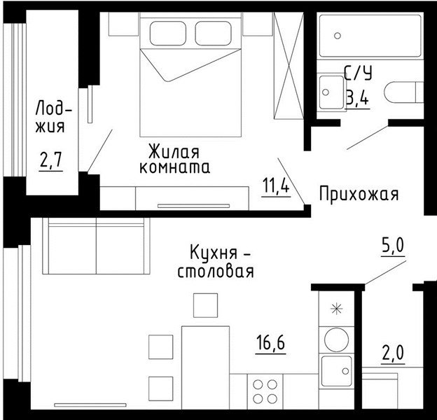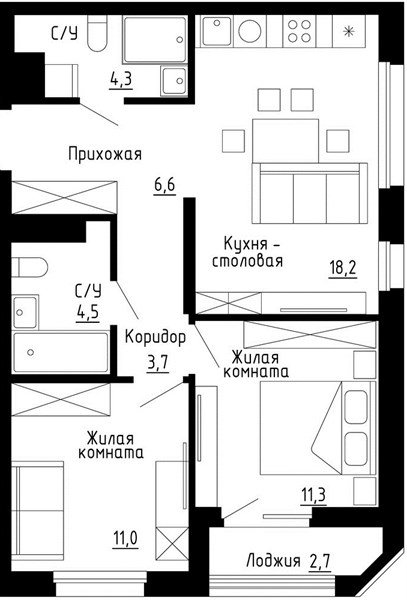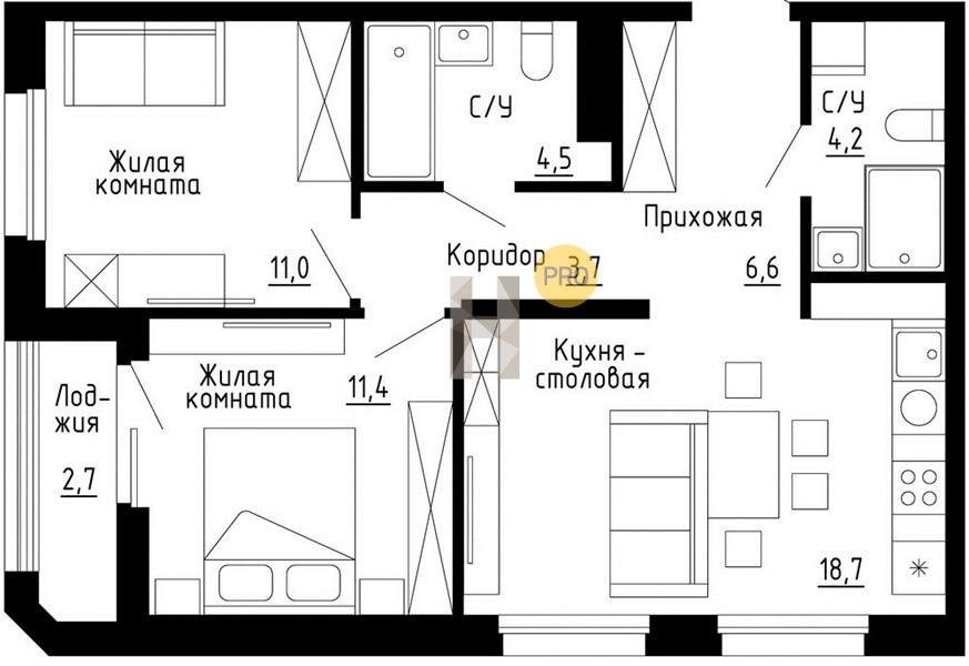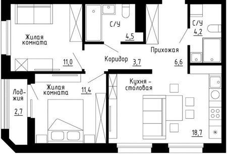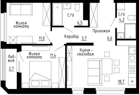 2 комнатная