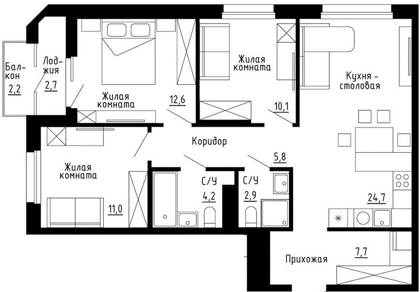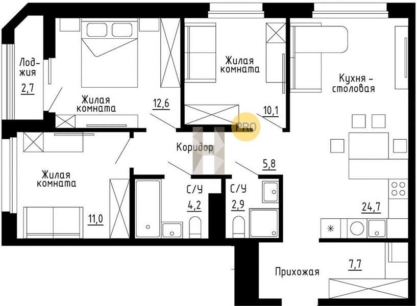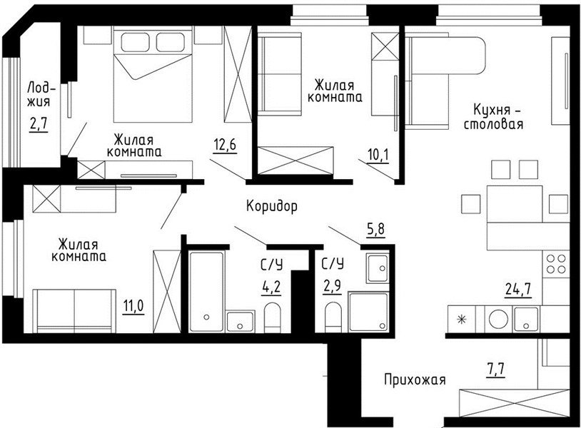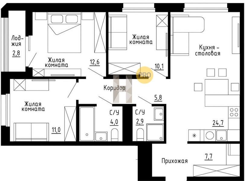 3 комнатная